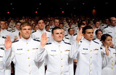 | The Coast Guard Academy Class of 2011 Cadets preparing to receive their commissions. (USCG Photo by Petty Officer 2nd Class Patrick Kelley) |
