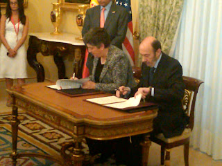 While in Madrid, Secretary Napolitano joined Spanish First Deputy Prime Minister and Interior Minister Alfredo Pérez Rubalacaba to sign the U.S.-Spain Agreement on Science and Technology for Homeland Security Matters.